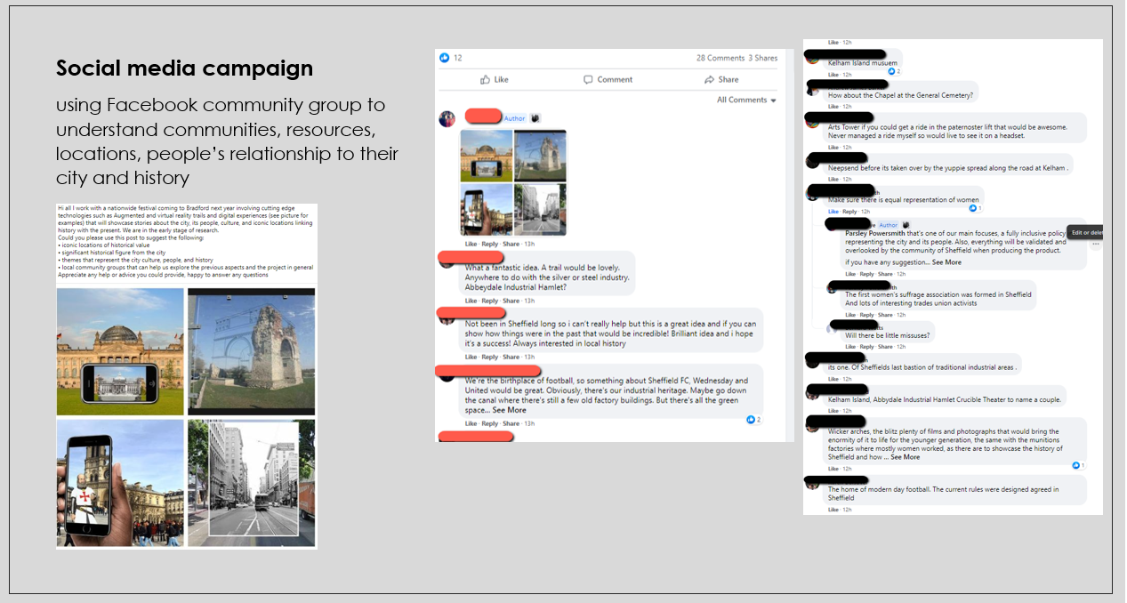 Led interviews, online ethnography, and 22 participatory focus groups to explore local histories, community aspirations, and attitudes towards immersive storytelling. Data systematically analysed and integrated into a comprehensive database accessible by creative teams.